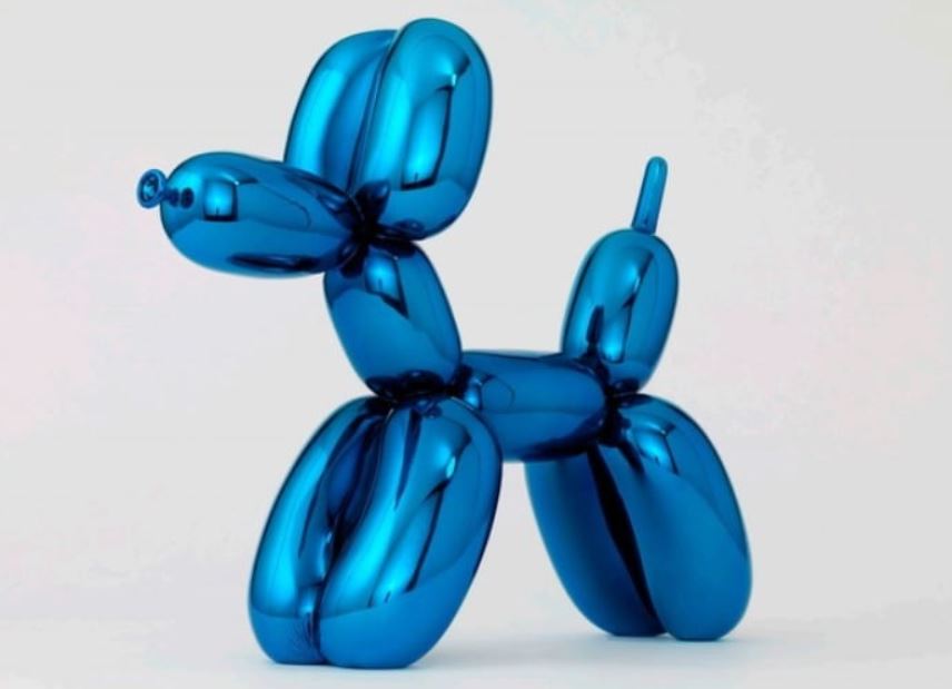 특히 그의 대표작인 '풍선 개(Balloon Dog)' 시리즈는 전 세계적으로 큰 반향을 일으켰다. 이 작품은 거대한 스테인리스 스틸 조각으로, 풍선으로 꼬아 만든 강아지 형태를 유광 처리해 반짝이는 표면으로 마감한 것인데 단순히 유희적 오브제 같지만 동시에 어린 시절의 순수한 기억과 소비 사회의 화려함, 그리고 예술의 상업적 측면까지 담아내며 현대 미술의 아이콘으로 자리 잡았다.