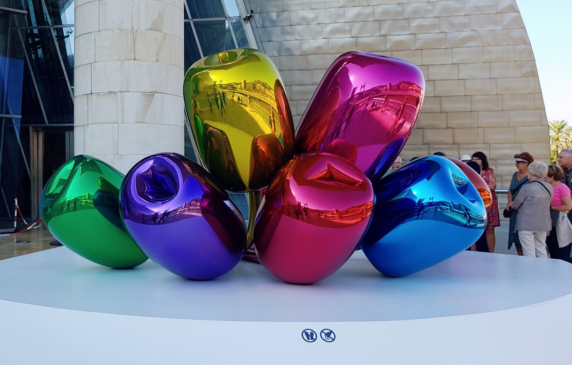 내가 제프 쿤스의 작품을 실제로 처음 본 곳은 스페인의 빌바오 구겐하임 미술관이었다. 미술관에 들어서기 전, 입구 광장에서 마주한 거대한 꽃 조형물 <퍼피(Puppy)>였는데 사이즈가 너무 커서 자연스레 시선이 갔다. 인기가 많은 만큼 수많은 사람들이 그 앞에서 기념사진을 찍고 있었다. 수천 송이의 생화로 뒤덮인 이 대형 강아지 조형물은 계절마다 꽃의 색이 달라진다고 하는데 내가 갔을 때는 하얀색, 핑크색, 노란색 등 다채로운 색이 어우러져 생동감이 넘쳐 눈길을 사로 잡았다.